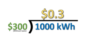 For this example; your electricity bill is $300, and you used 1000 kilowatts, which means that your electricity rate is 30 cents per kilowatt hour.